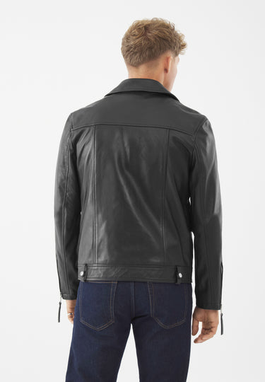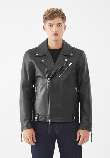 Biker jacket from Bolongaro Trevor in soft real leather. This classic biker features a fastened notch lapel, asymmetric front, belt loops, zip pockets and zip cuffs. This jacket will last the test of time aging with you developing its own unique character.