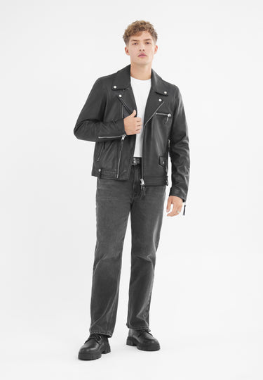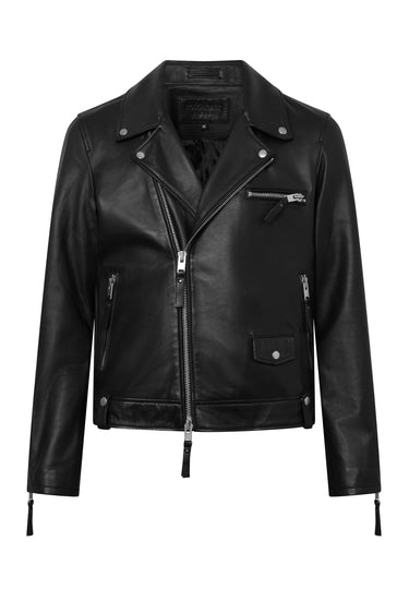 Biker jacket from Bolongaro Trevor in soft real leather. This classic biker features a fastened notch lapel, asymmetric front, two way zip, belt loops, zip pockets, coin pocket and zip cuffs. This jacket will last the test of time aging with you developing its own unique character.