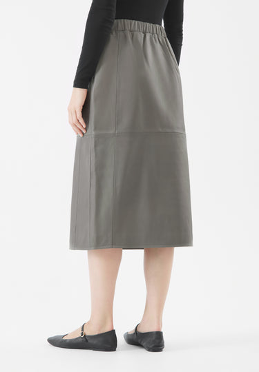 Real Leather Simone Elasticated Waist Midi | Desert Taupe
