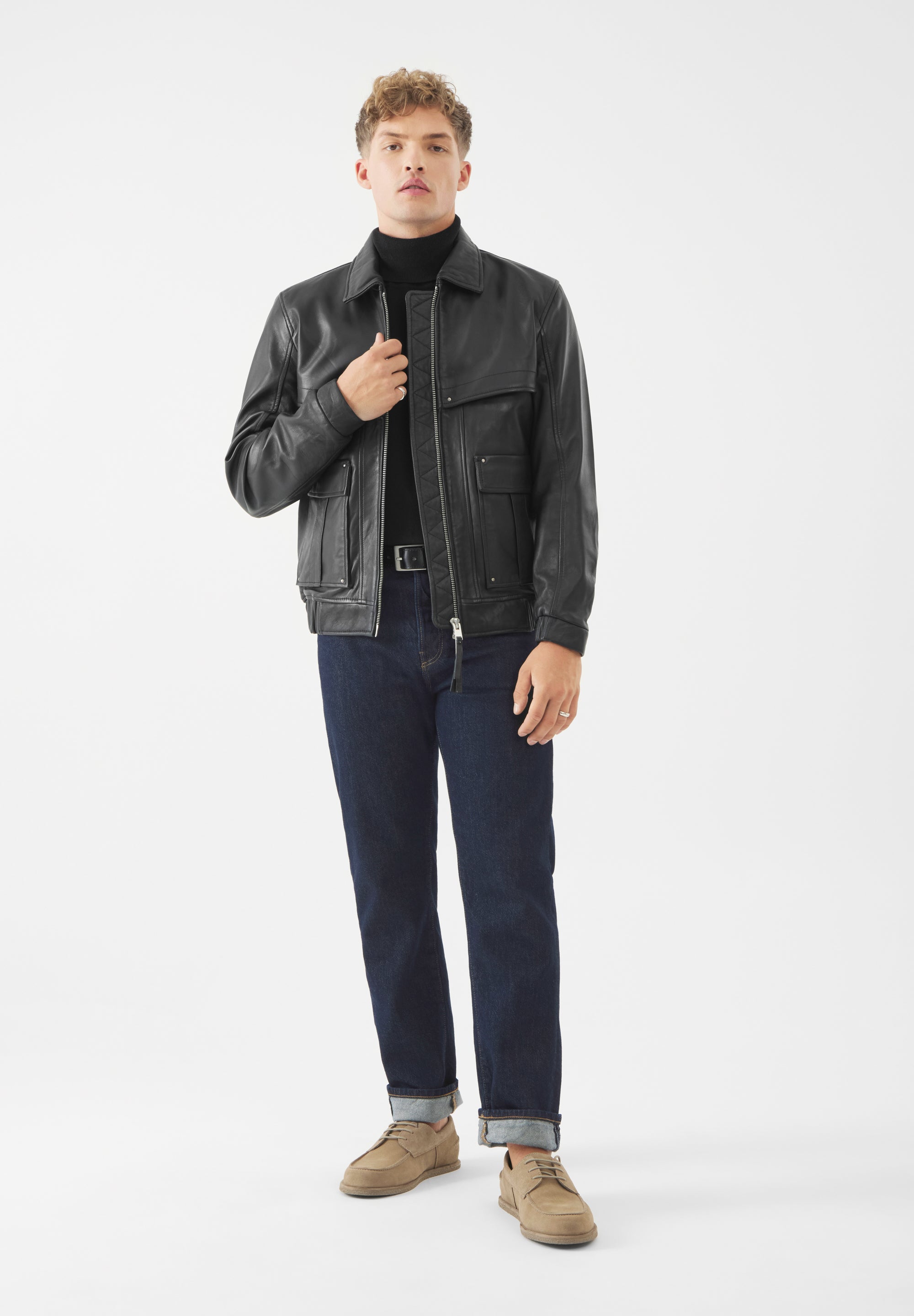 Zip through worker jacket from Bolongaro Trevor in soft real leather. This classic zip through jacket features a classic shirting collar, two way zip front, zip pockets and zip cuffs. This jacket will last the test of time aging with you developing its own unique character.