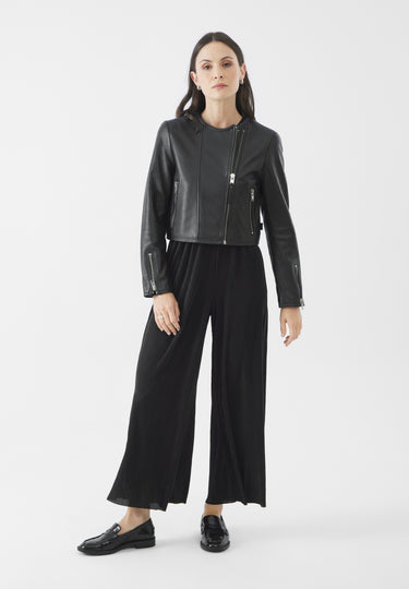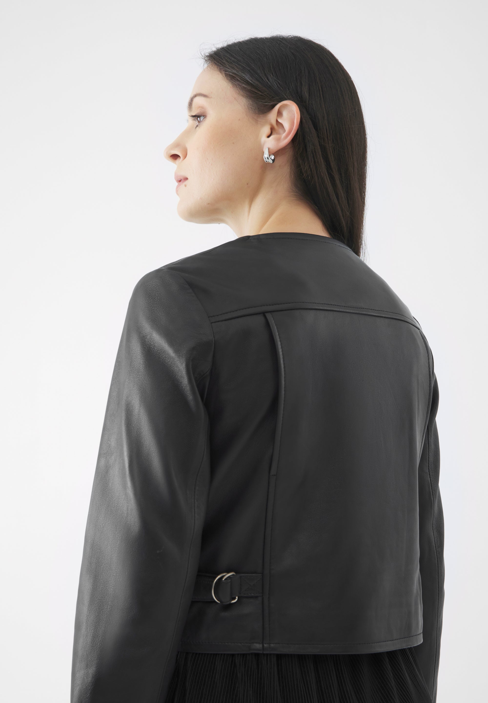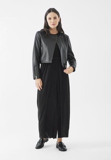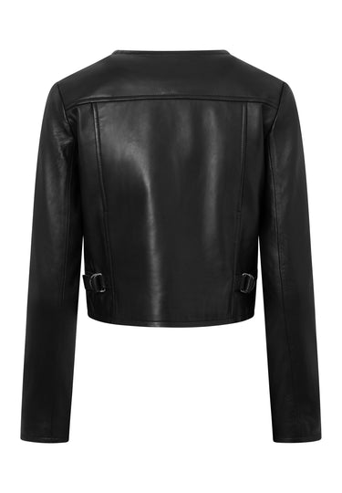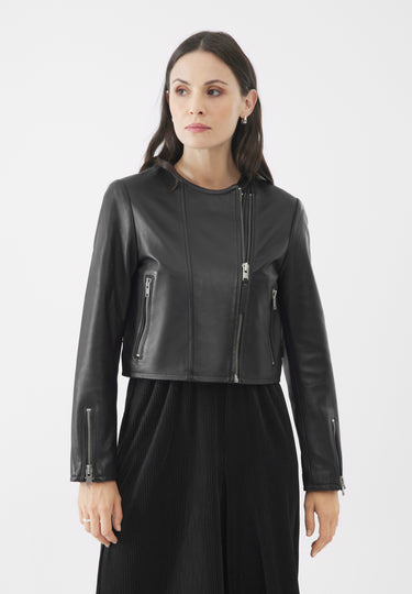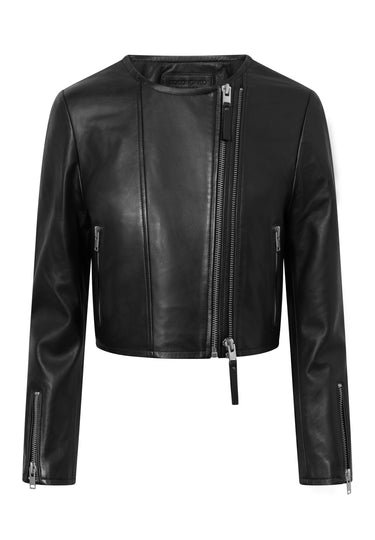 Round neck jacket from Bolongaro Trevor in soft real leather. This round neck jacket features a collarless design, Asymmetric front, zip front fastening, zip pockets, side tab adjusters and zip cuffs. This jacket will last the test of time aging with you developing its own unique character.