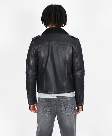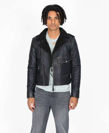 Embrace the allure of the open road with the Cropped Mac Biker Jacket by Bolongaro Trevor. Featuring a distressed leather finish and a cozy faux shearling collar, this jacket is designed for the adventurer who values both style and substance.