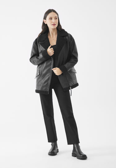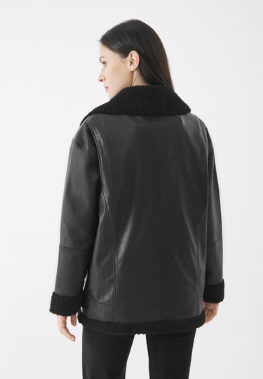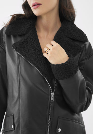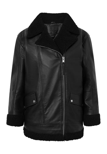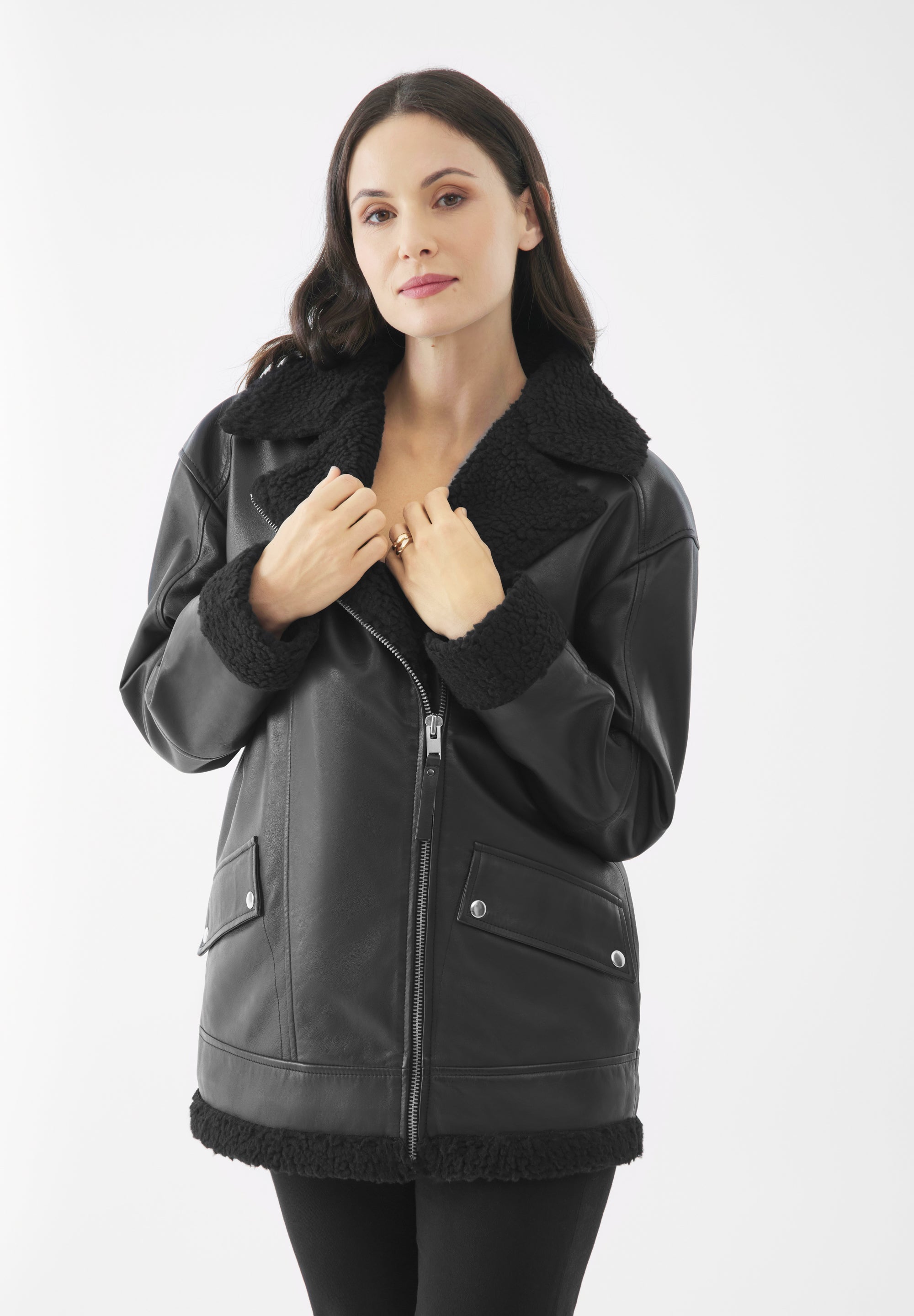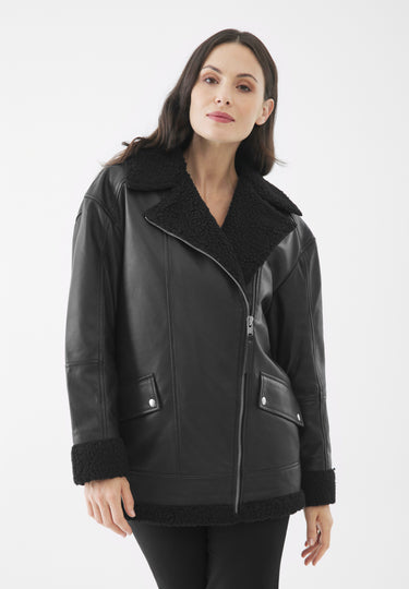 Shearling Biker jacket from Bolongaro Trevor in soft real leather. This classic shearling biker features a shearling notch lapel, asymmetric front, snap fastened flap pockets and shearling cuff and hem detail. This jacket will last the test of time aging with you developing its own unique character.