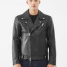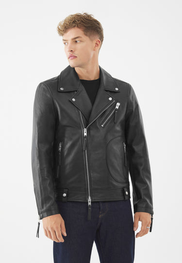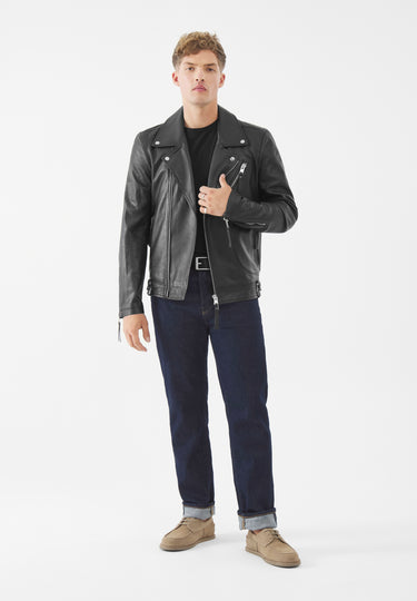Biker jacket from Bolongaro Trevor in soft real leather. This classic biker features a fastened notch lapel, asymmetric front, belt loops, zip pockets and zip cuffs. This jacket will last the test of time aging with you developing its own unique character.