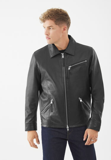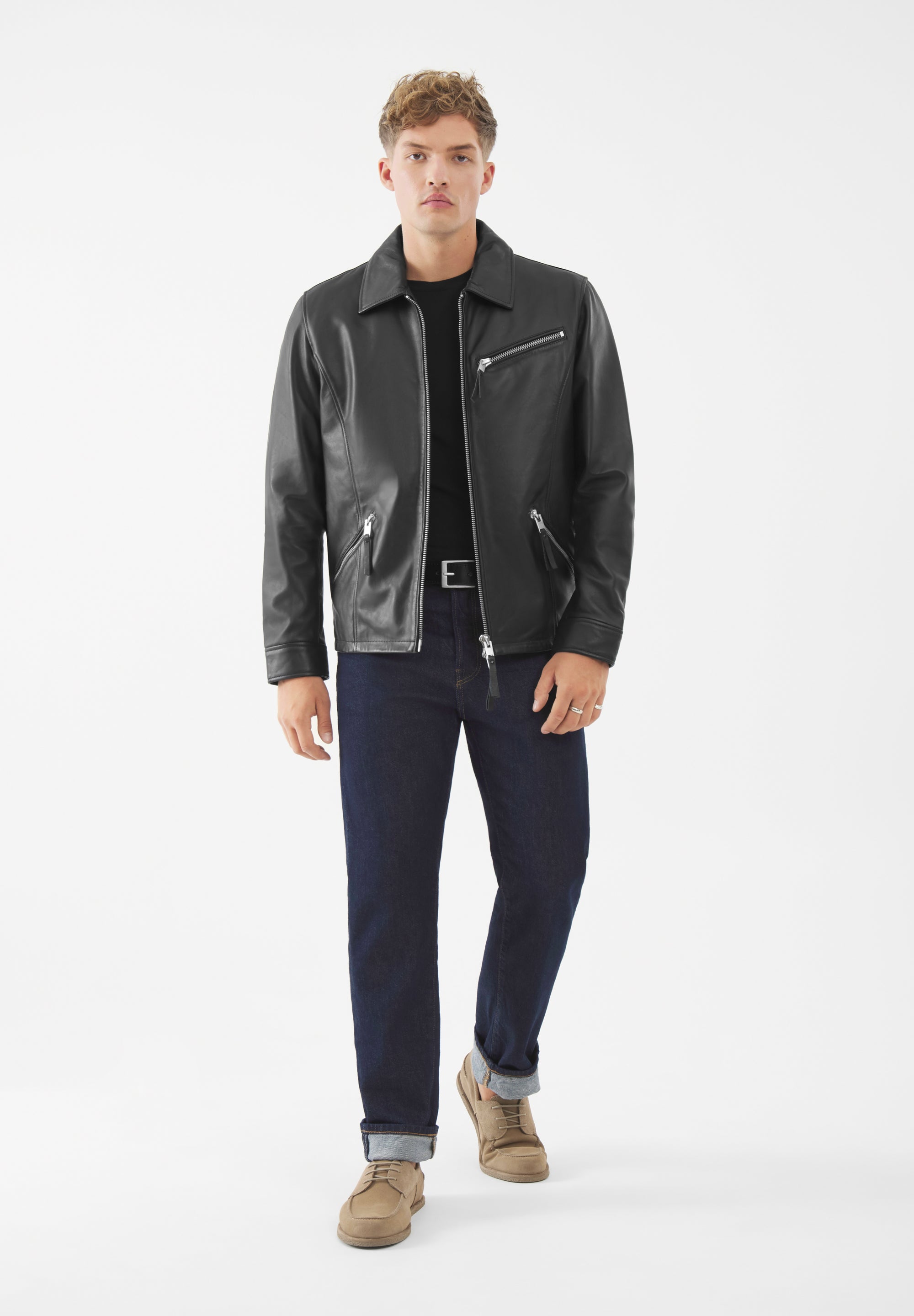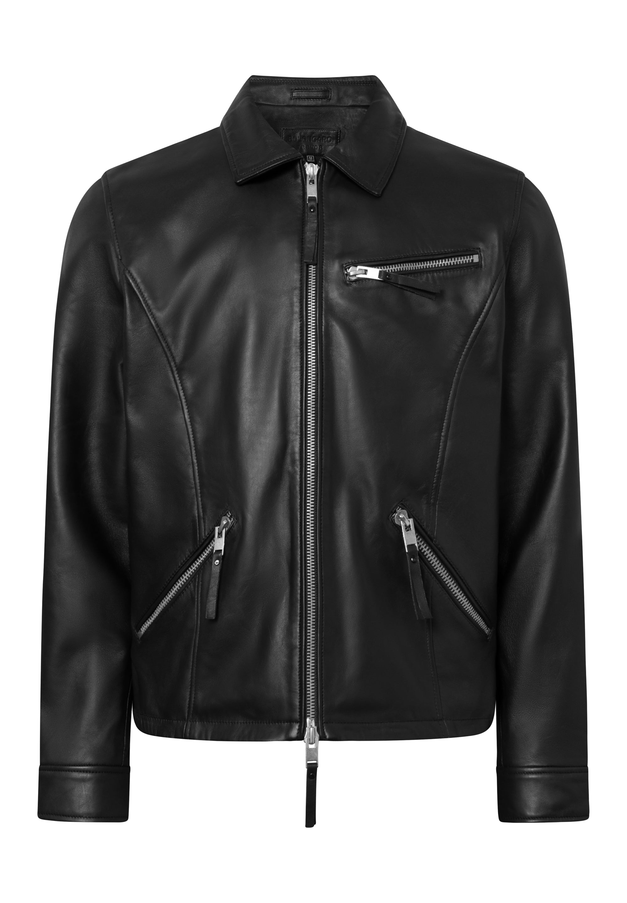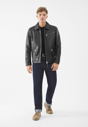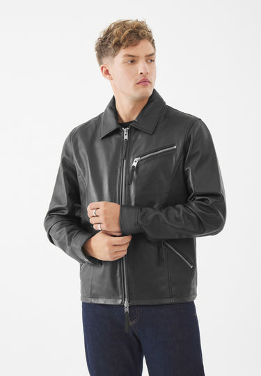 Zip through worker jacket from Bolongaro Trevor in soft real leather. This classic zip through jacket features a classic shirting collar, two way zip front, zip pockets and snap cuffs. This jacket will last the test of time aging with you developing its own unique character.