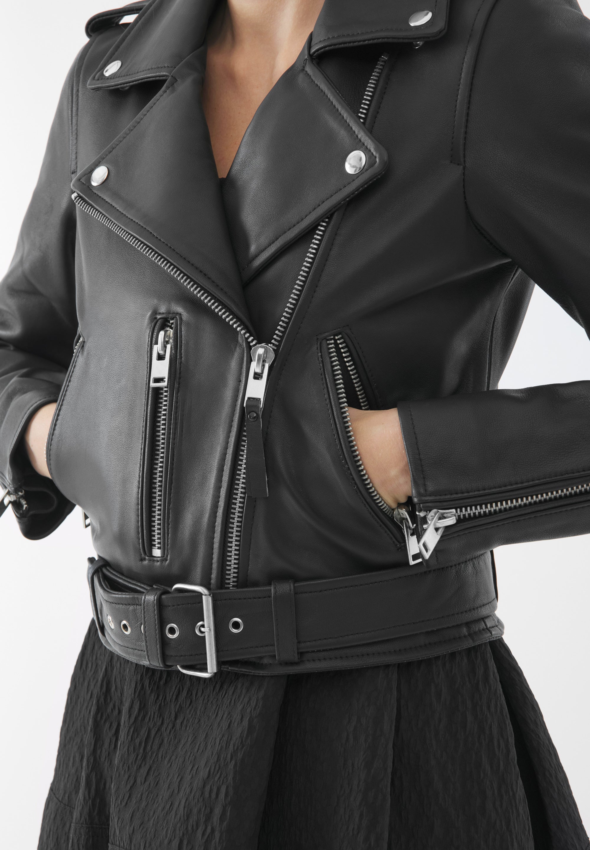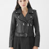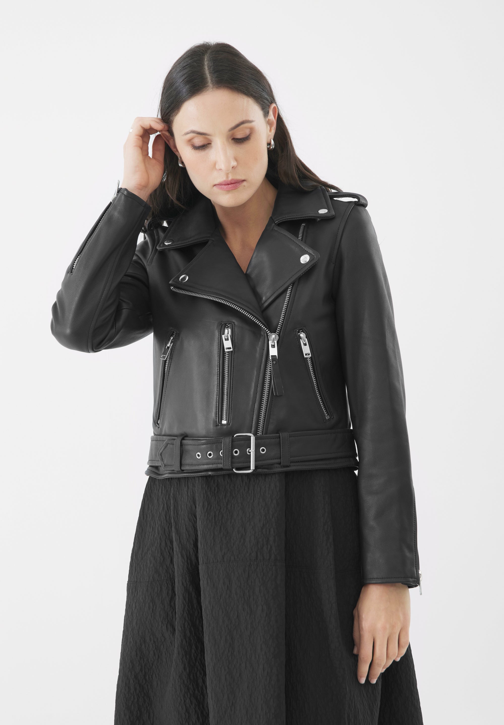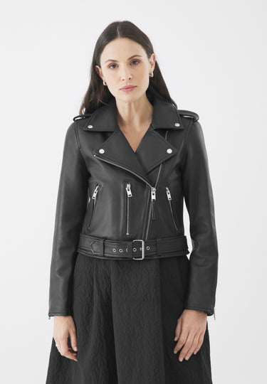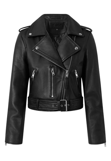 Biker jacket from Bolongaro Trevor in soft real leather. This classic biker features a fastened notch lapel, asymmetric front, epaulettes, zip pockets, adjustable belt and zip cuffs. This jacket will last the test of time aging with you developing its own unique character.