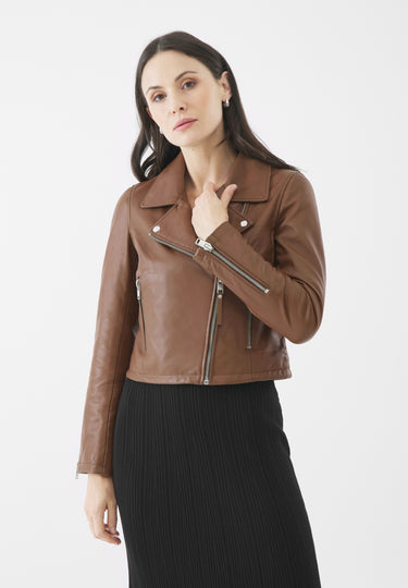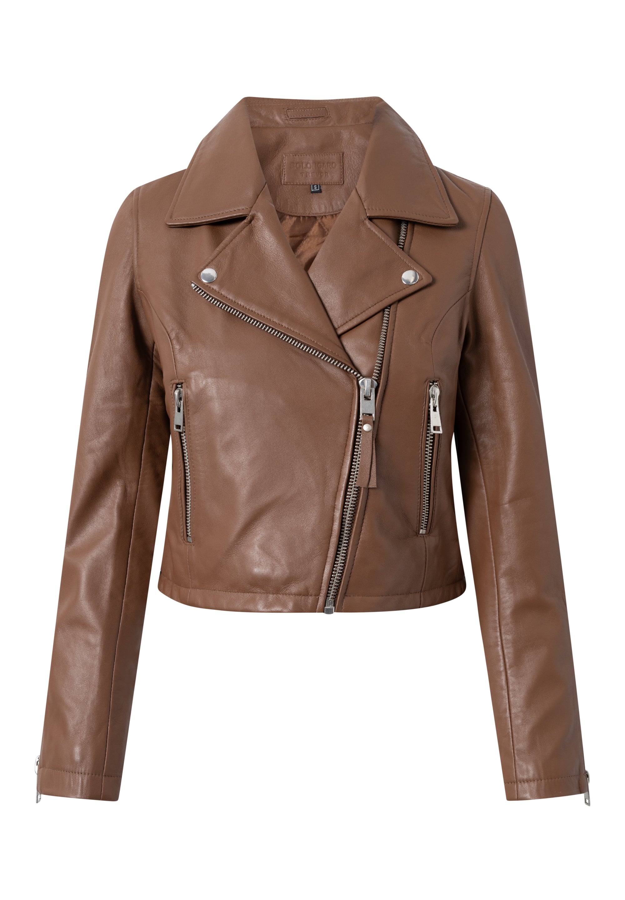 Biker jacket from Bolongaro Trevor in soft real leather. This classic biker features a fastened notch lapel, asymmetric front, vented shoulders, zip pockets and zip cuffs. This jacket will last the test of time aging with you developing its own unique character.