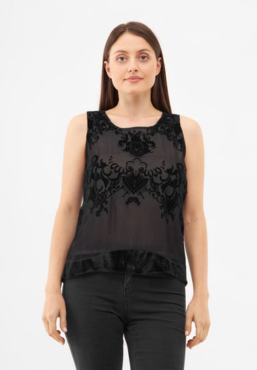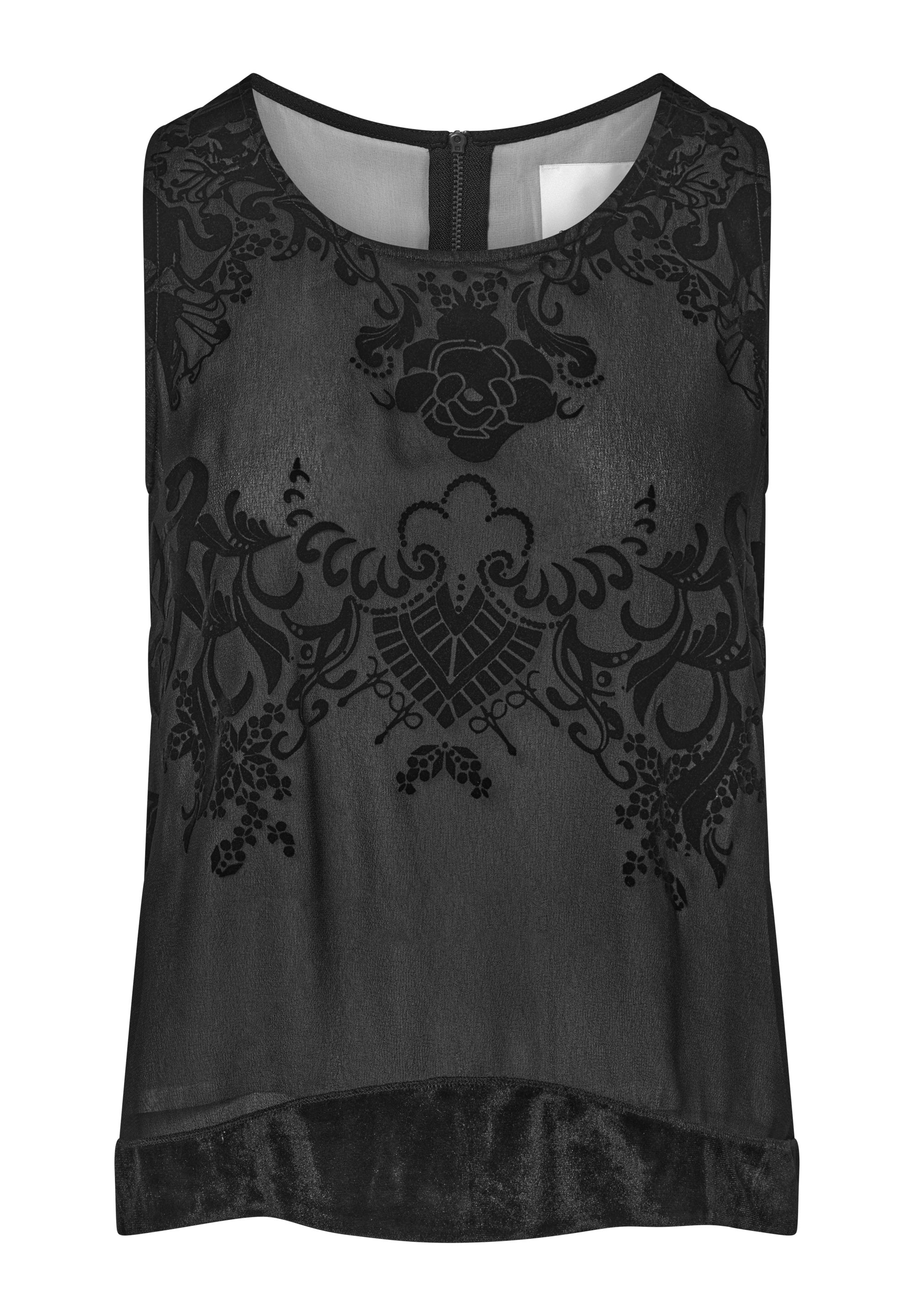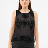 Embrace striking sophistication with the Tattoo Top from Bolongaro Trevor. This double-layered sleeveless top features a velvet baroque-inspired applique design, seamlessly blending classic opulence with modern edge.